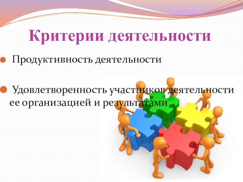 Критерии деятельности Продуктивность деятельности Удовлетворенность участников деятельности ее организацией и результатами