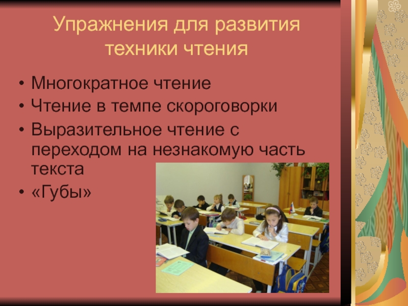 парах, группах, фронтальное чтение в классе: коллективное и совместное чтение; хоровое и индивидуальное чтение, продолжительное чтение;