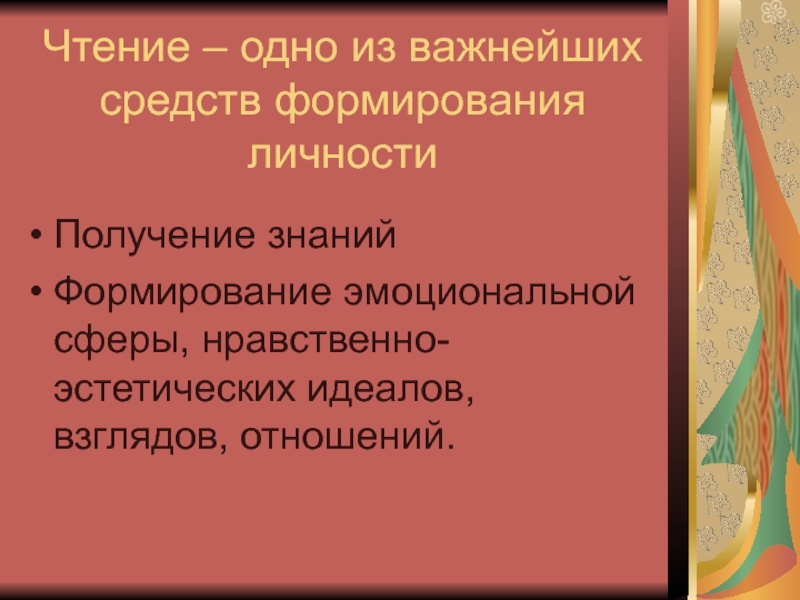 Слайд 8Чтение – одно из важнейших средств формирования личности