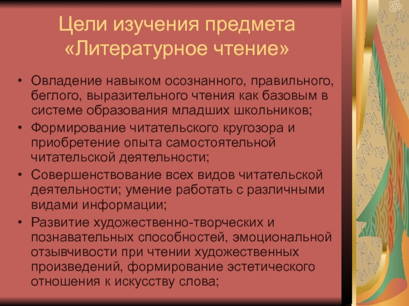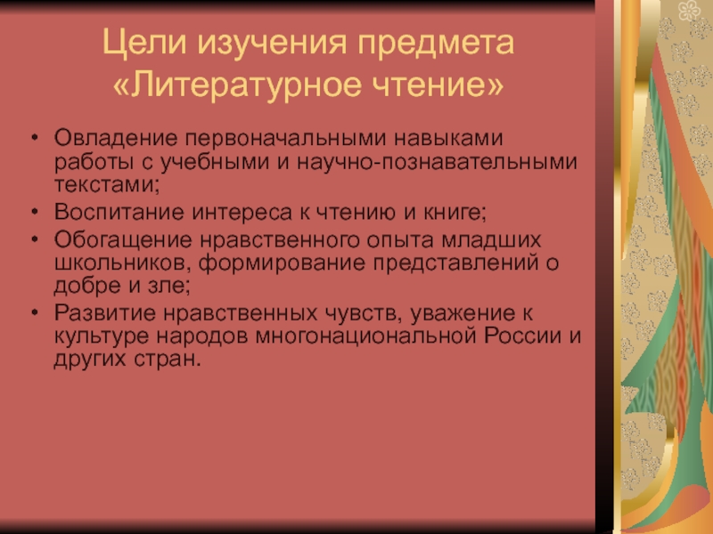 Слайд 10Цели изучения предмета «Литературное чтение»