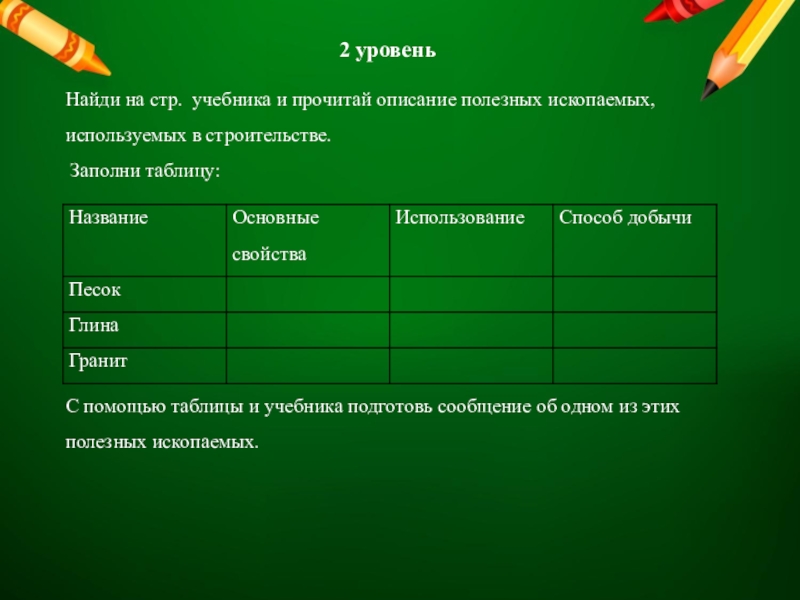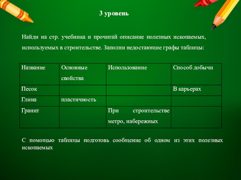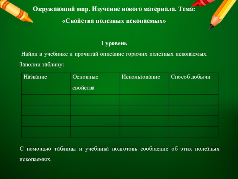 С помощью таблицы подготовь сообщение об одном из этих полезных ископаемых