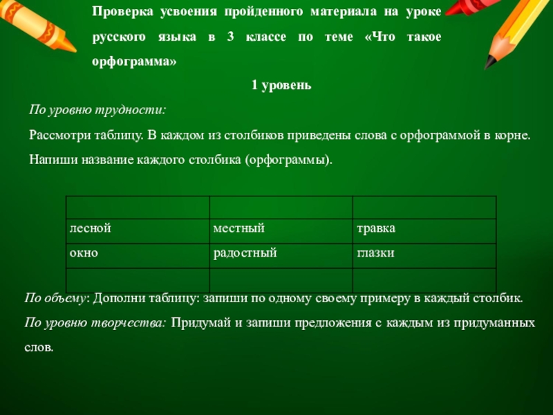 Проверка усвоения пройденного материала на уроке русского языка в 3 классе по теме «Что такое орфограмма»