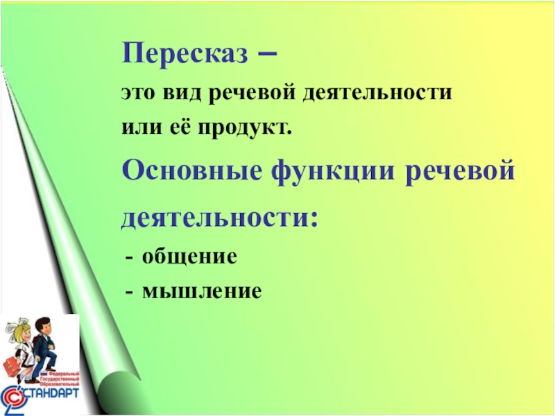 Слайд 5Пересказ –