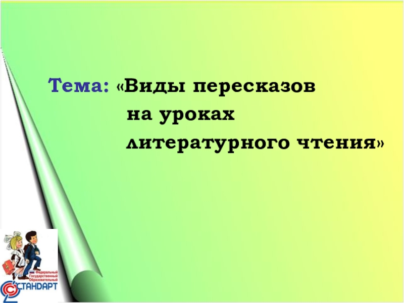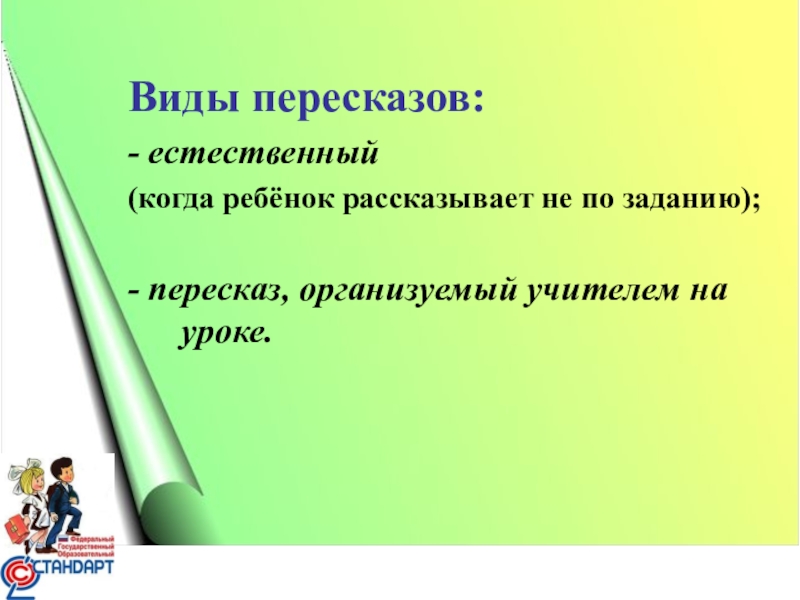 Слайд 2 Тема: «Виды пересказов