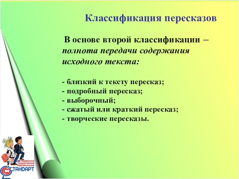 Слайд 14 Классификация пересказов