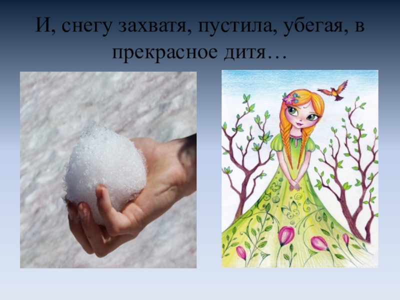 Слайд 13И, снегу захватя, пустила, убегая, в прекрасное дитя…