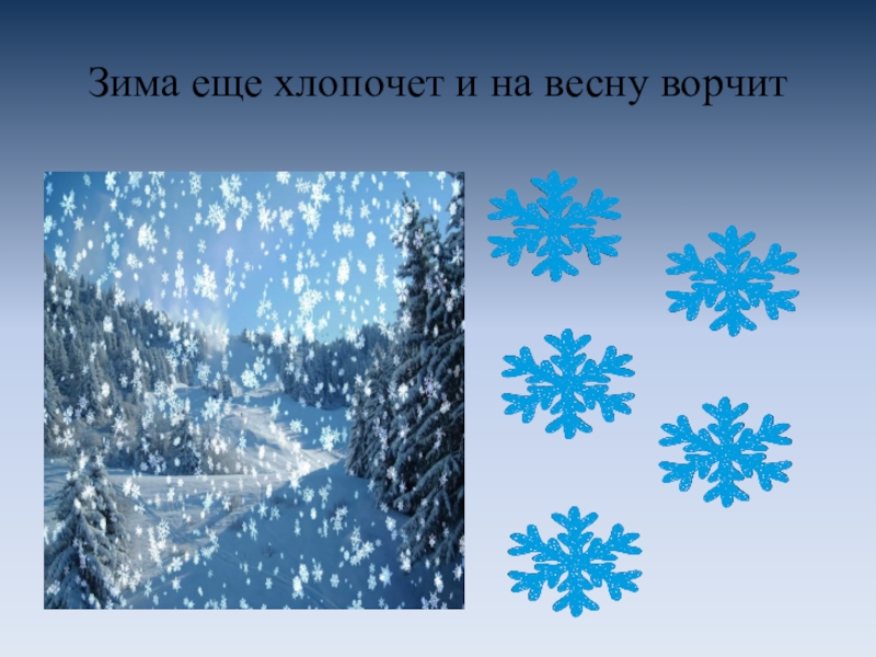 Слайд 10Зима еще хлопочет и на весну ворчит