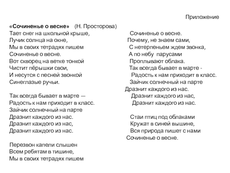 «Сочиненье о весне» (Н. Просторова)
