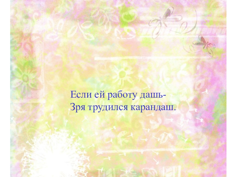 Если ей работу дашь-Зря трудился карандаш.