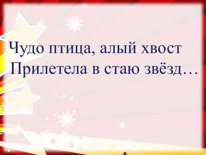 Чудо птица, алый хвостПрилетела в стаю звёзд…