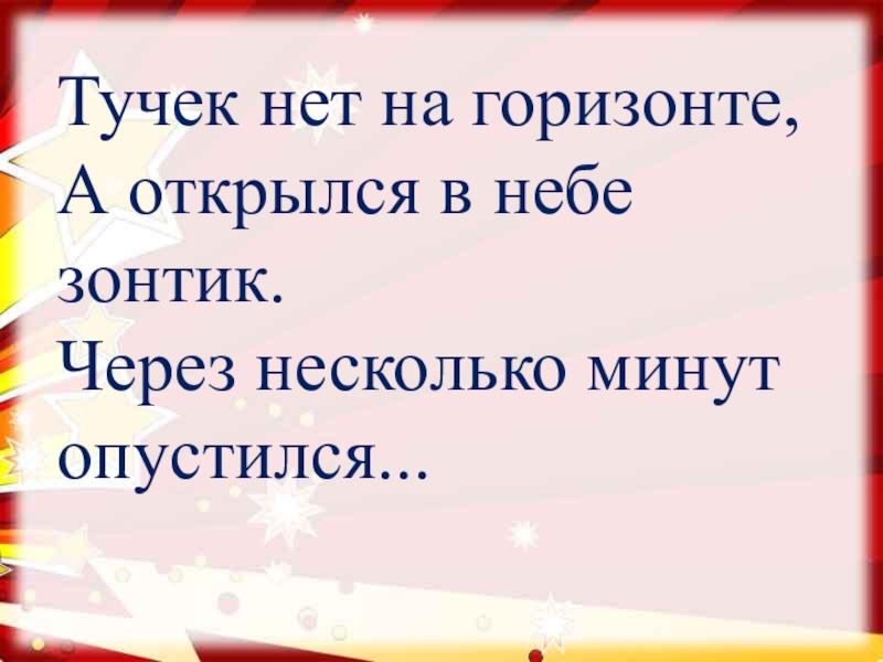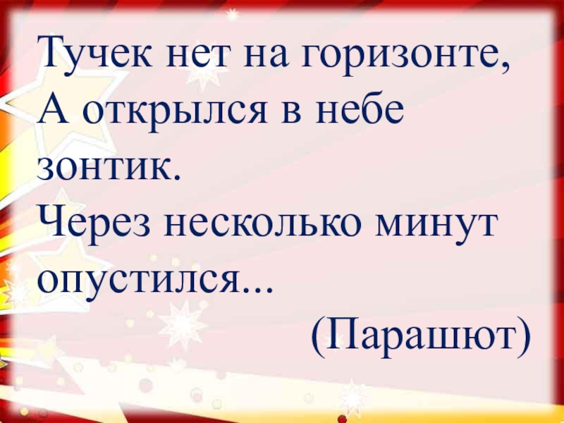 Тучек нет на горизонте,А открылся в небе зонтик.Через несколько минут опустился...