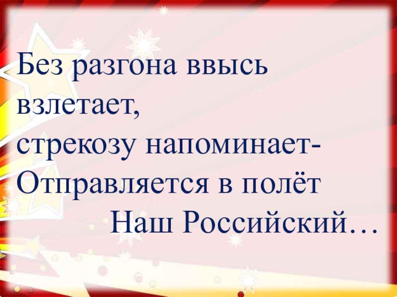 Без разгона ввысь взлетает, стрекозу напоминает-Отправляется в полётНаш Российский…