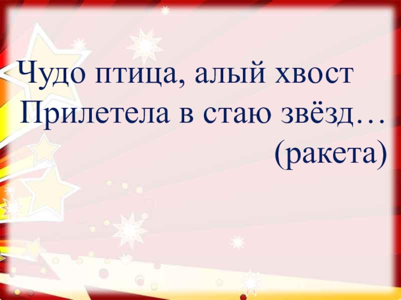 Чудо птица, алый хвостПрилетела в стаю звёзд… (ракета)