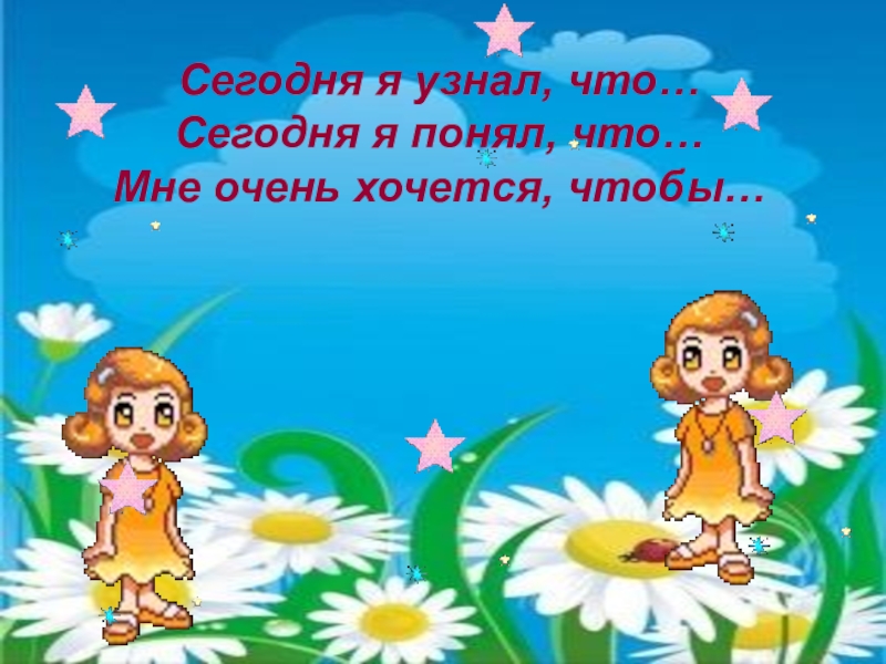 Сегодня я узнал, что…Сегодня я понял, что…Мне очень хочется, чтобы…