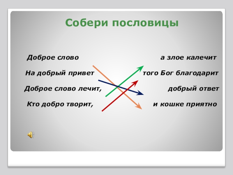 а злое калечит На добрый привет того Бог благодарит Доброе слово лечит, добрый ответ Кто добро творит, и кошке приятно