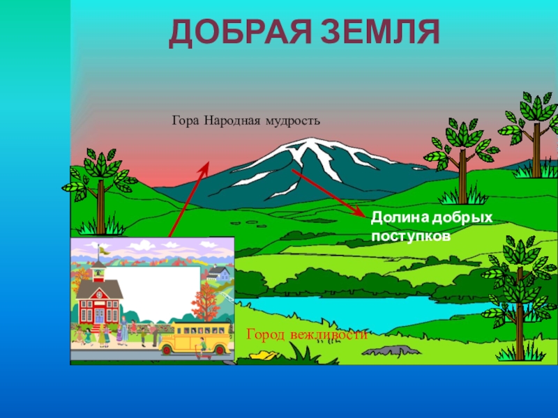ДОБРАЯ ЗЕМЛЯГород вежливостиДолина добрых поступковГора Народная мудрость