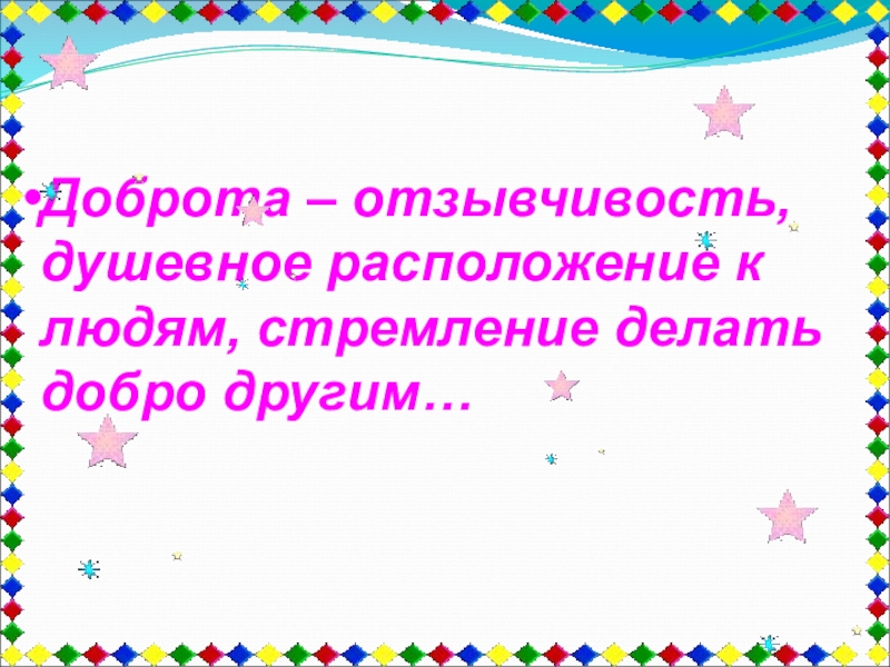 Доброта – отзывчивость, душевное расположение к людям, стремление делать добро другим…