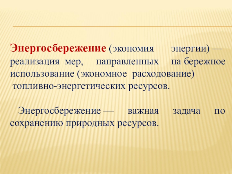 Энергосбережение (экономия энергии) — реализация  мер, направленных на бережное использование (экономное расходование)