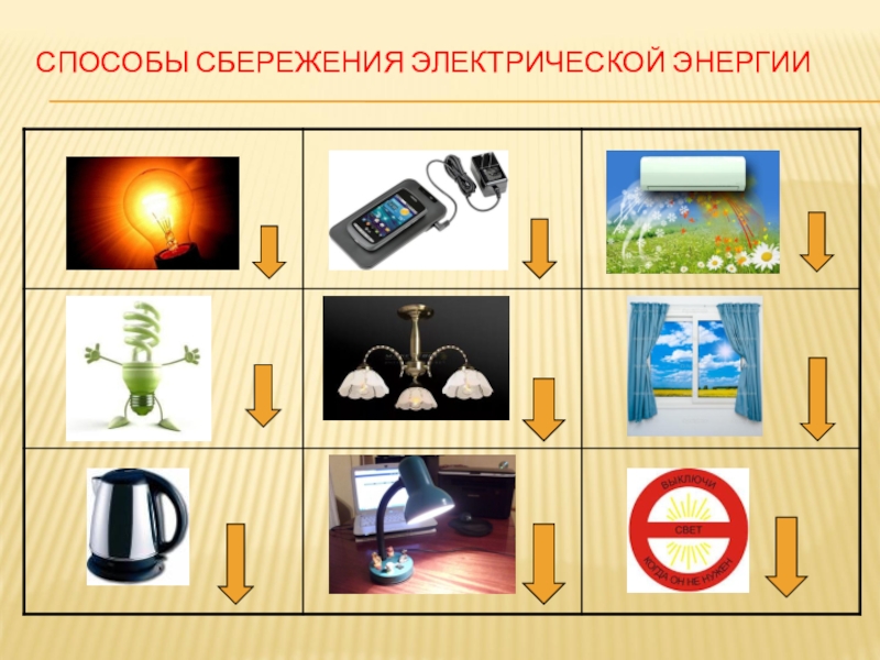 Слайд 5СПОСОБЫ СБЕРЕЖЕНИЯ ЭЛЕКТРИЧЕСКОЙ ЭНЕРГИИ