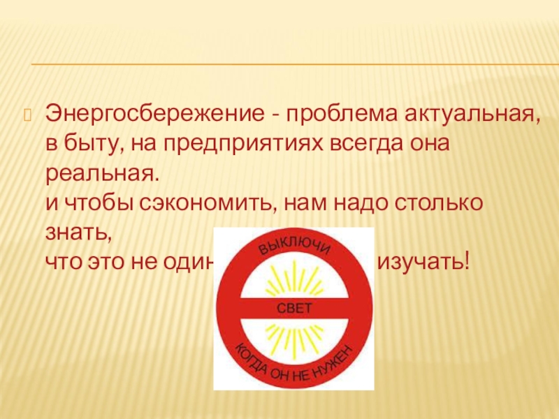 Энергосбережение - проблема актуальная, в быту, на предприятиях всегда она реальная. и чтобы сэкономить, нам надо столько