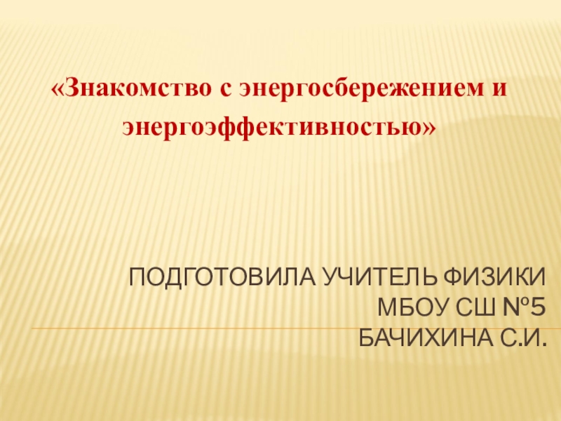 ПОДГОТОВИЛА УЧИТЕЛЬ ФИЗИКИ МБОУ СШ №5 БАЧИХИНА С.И.«Знакомство с энергосбережением и энергоэффективностью»