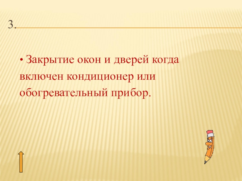 3. • Закрытие окон и дверей когда включен кондиционер или обогревательный прибор.