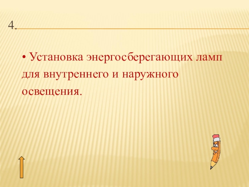 4. • Установка энергосберегающих ламп для внутреннего и наружного освещения.