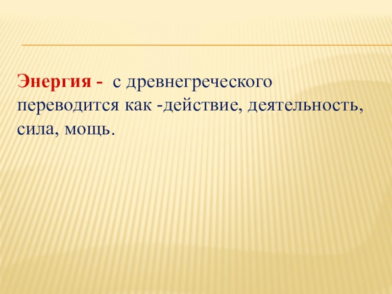 Энергия -  с древнегреческого переводится как -действие, деятельность,