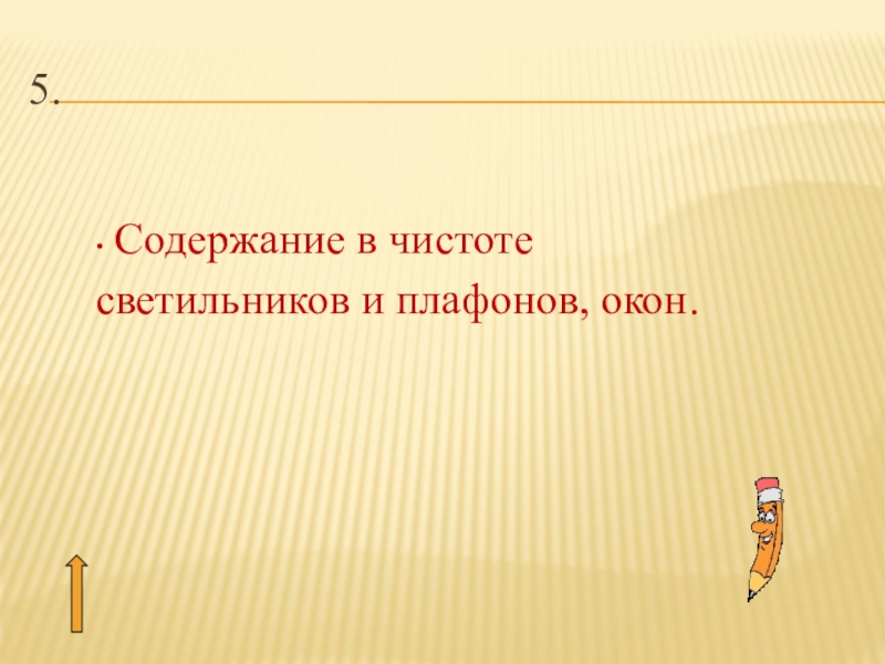 5. • Содержание в чистоте светильников и плафонов, окон.