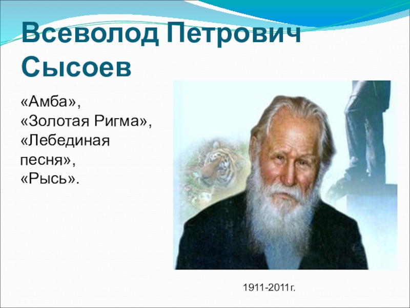 Всеволод Петрович Сысоев1911-2011г.«Амба»,«Золотая Ригма»,«Лебединая песня»,«Рысь».