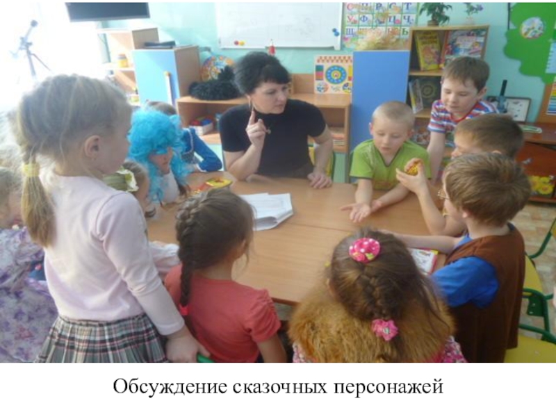 Слайд 4Обсуждение сказочных персонажей