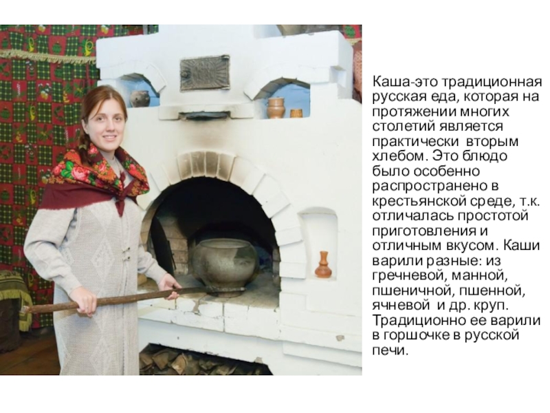 Слайд 4Каша-это традиционная русская еда, которая на протяжении многих столетий является практически