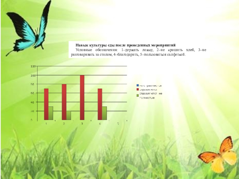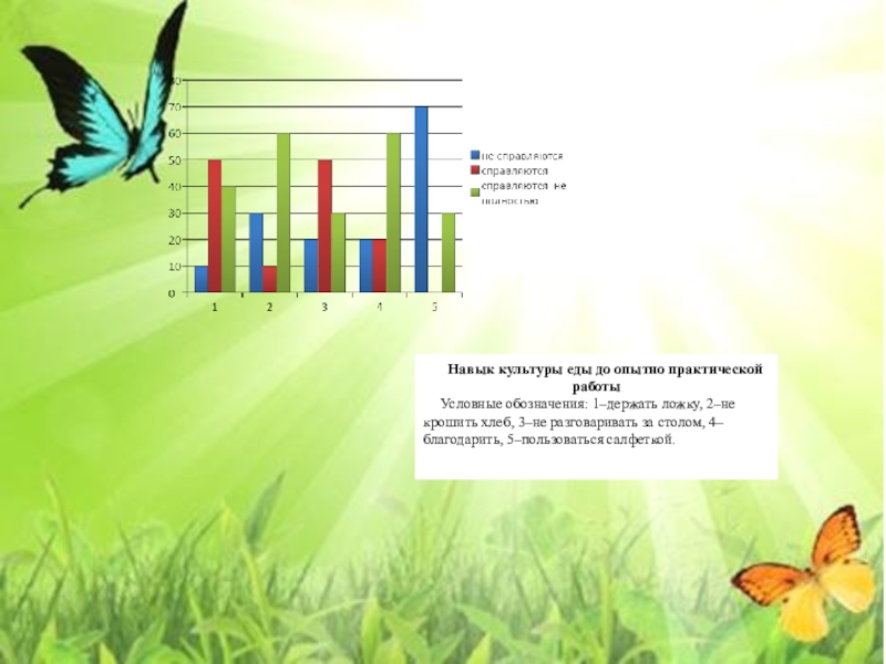 Условные обозначения: 1–держать ложку, 2–не крошить хлеб, 3–не разговаривать за столом, 4–благодарить, 5–пользоваться салфеткой.