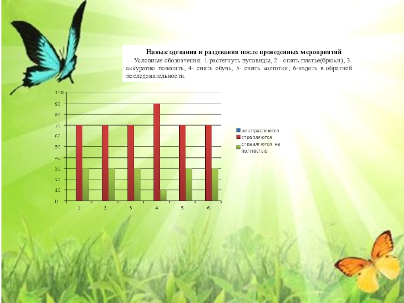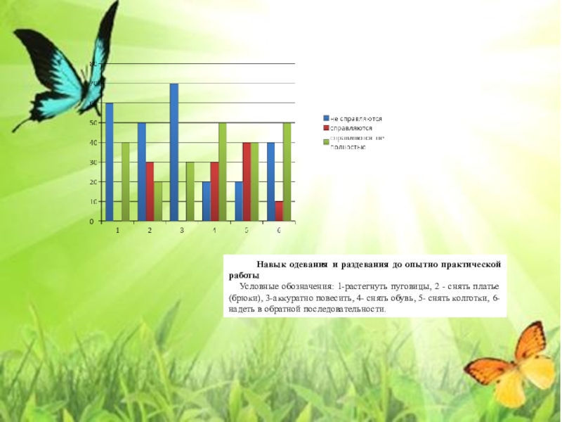 Условные обозначения: 1-растегнуть пуговицы, 2 - снять платье(брюки), 3-аккуратно повесить, 4- снять обувь, 5- снять колготки, 6-надеть в обратной последовательности.