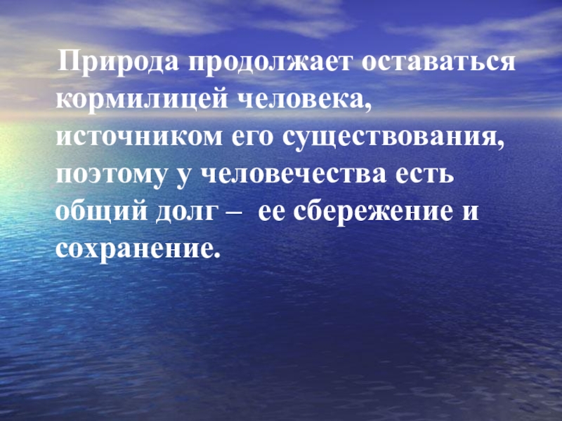 Природа продолжает оставаться кормилицей человека, источником его существования, поэтому у человечества есть общий долг –