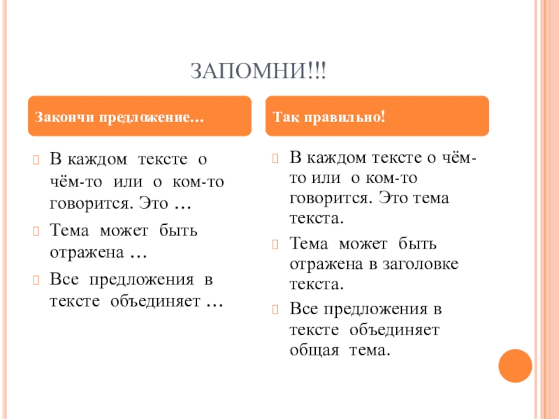 В каждом тексте о чём-то или о ком-то говорится. Это тема текста.
