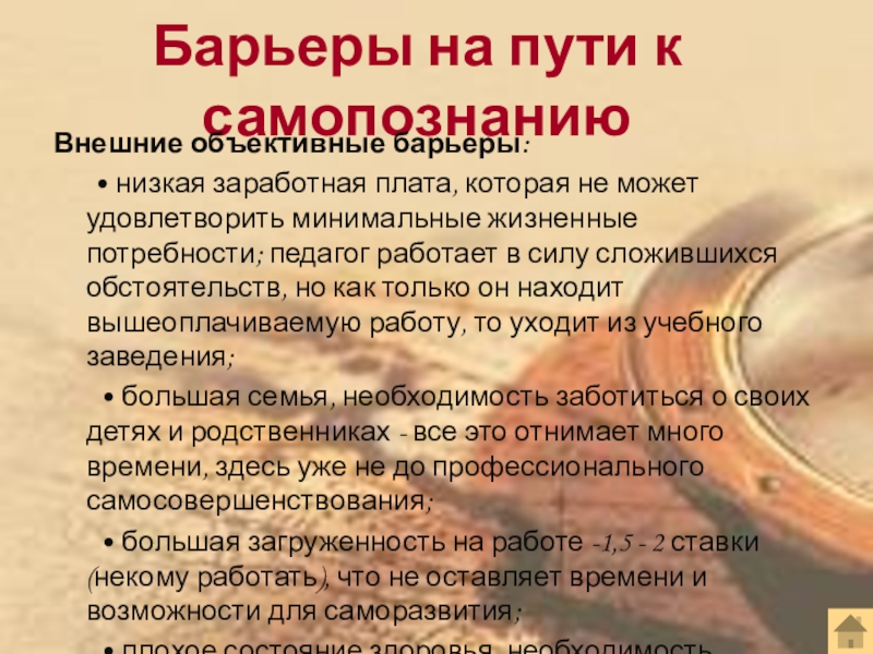 • большая семья, необходимость заботиться о своих детях и родственниках - все это отнимает много времени, здесь уже не до профессионального самосовершенствования;