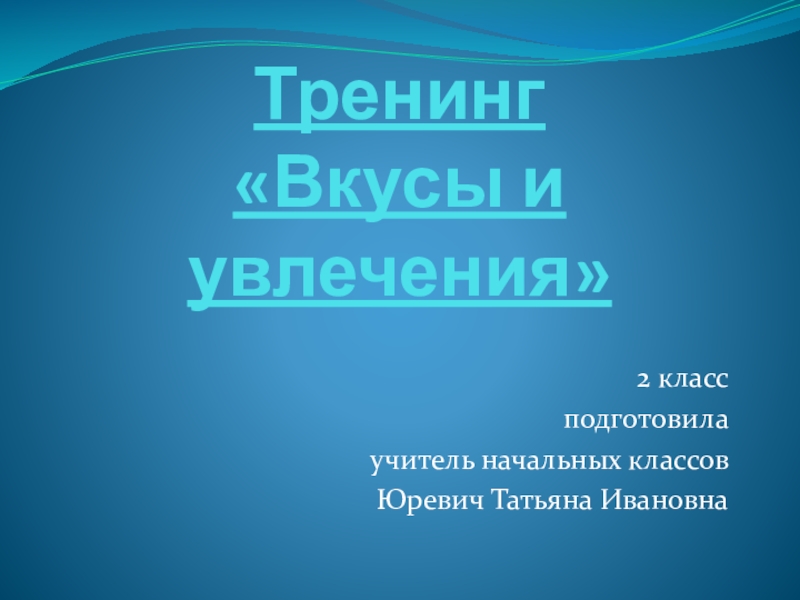 Тренинг «Вкусы и увлечения»2 классподготовилаучитель начальных классовЮревич Татьяна Ивановна