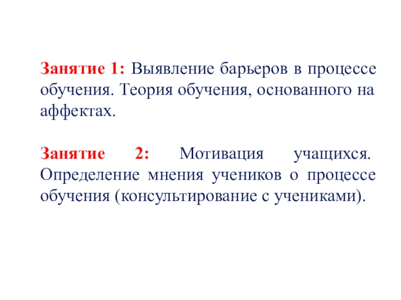 Занятие 2: Мотивация учащихся. Определение мнения учеников о процессе обучения (консультирование с учениками).
