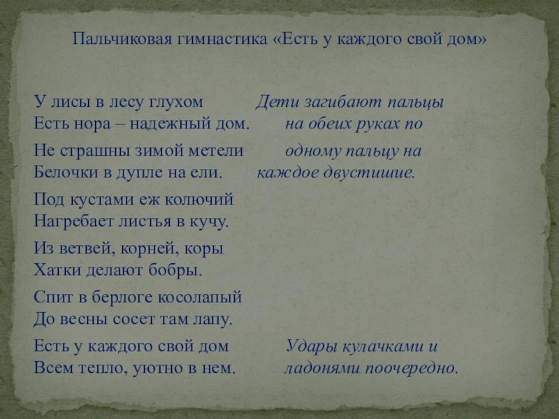 Пальчиковая гимнастика «Есть у каждого свой дом»