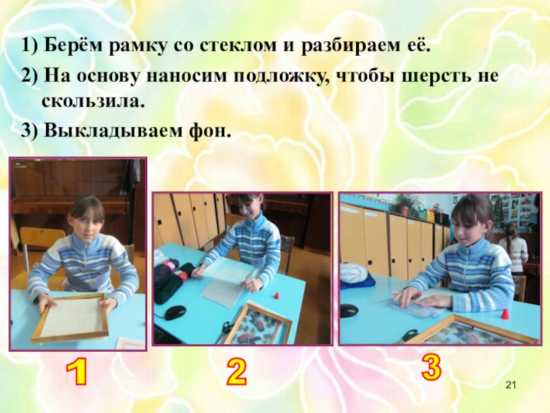 Сидеть при валянии следует на стуле со спинкой, слегка наклонив голову вниз.