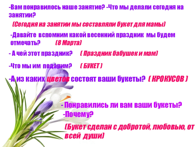 -Вам понравилось наше занятие? -Что мы делали сегодня на занятии?