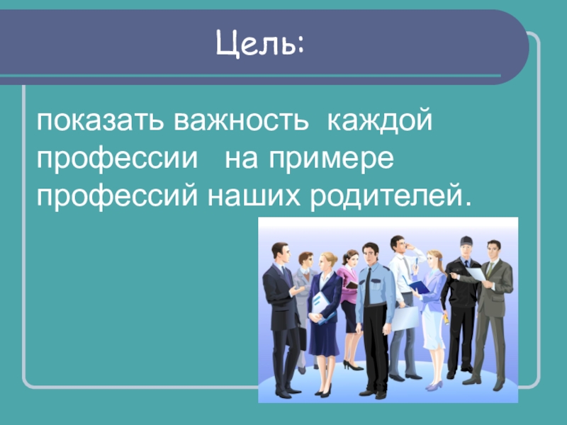 Цель:показать важность каждой профессии  на примере профессий наших родителей.