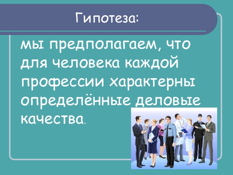 Гипотеза:мы предполагаем, что для человека каждой профессии характерны определённые деловые качества.