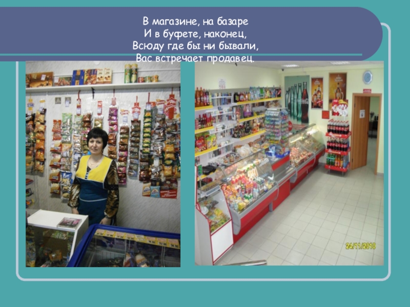 В магазине, на базареИ в буфете, наконец,Всюду где бы ни бывали,Вас встречает продавец.