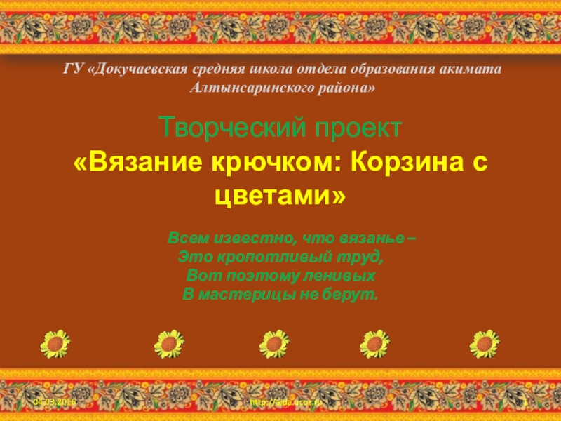 ГУ «Докучаевская средняя школа отдела образования акимата Алтынсаринского района»