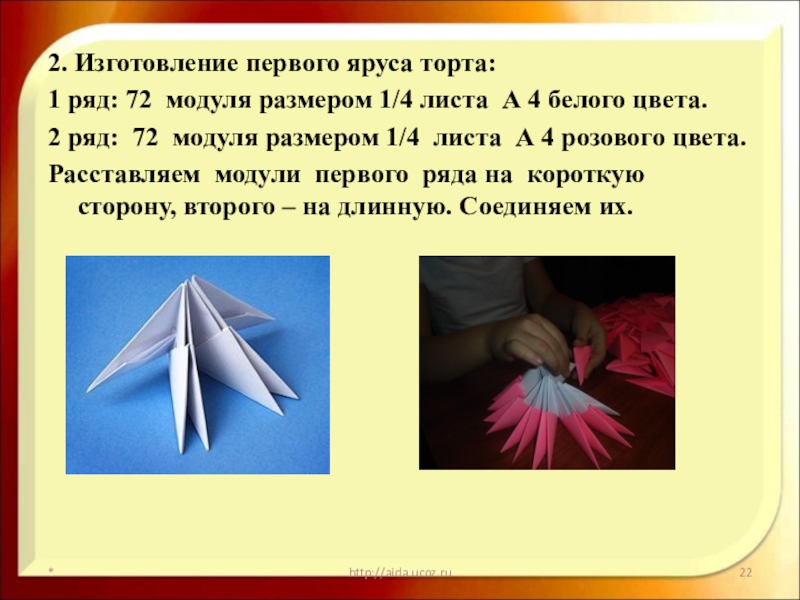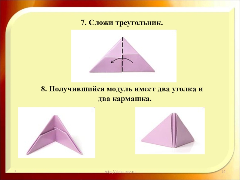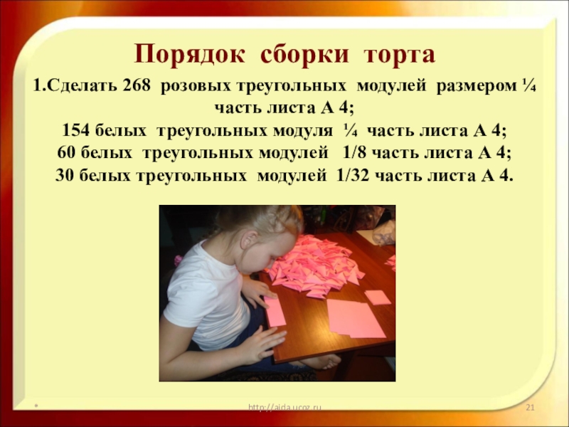 1.Сделать 268 розовых треугольных модулей размером ¼ часть листа