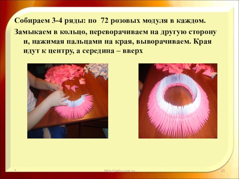 Слайд 23Собираем 3-4 ряды: по 72 розовых модуля в каждом.