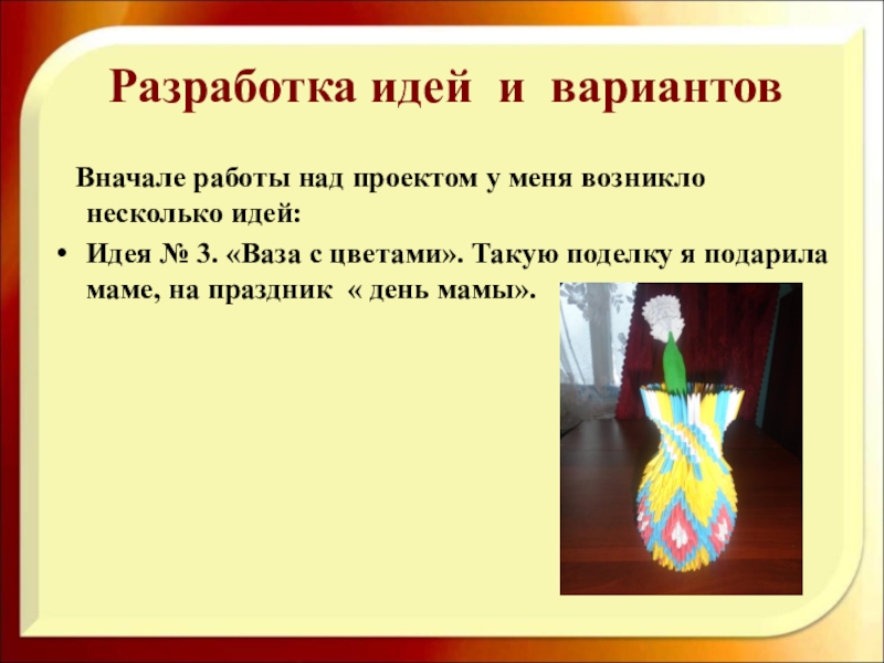 Идея № 3. «Ваза с цветами». Такую поделку я подарила маме, на праздник « день мамы».