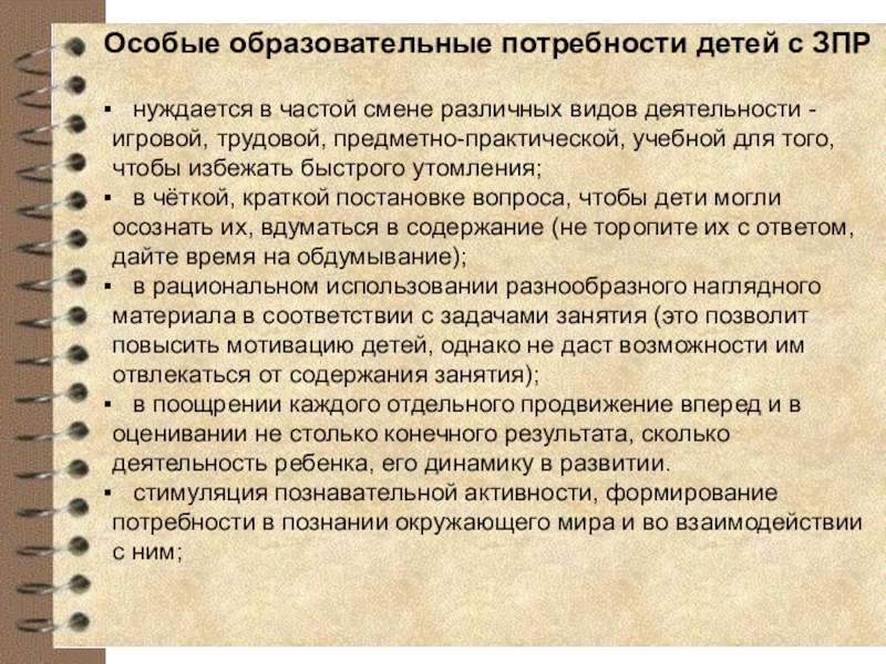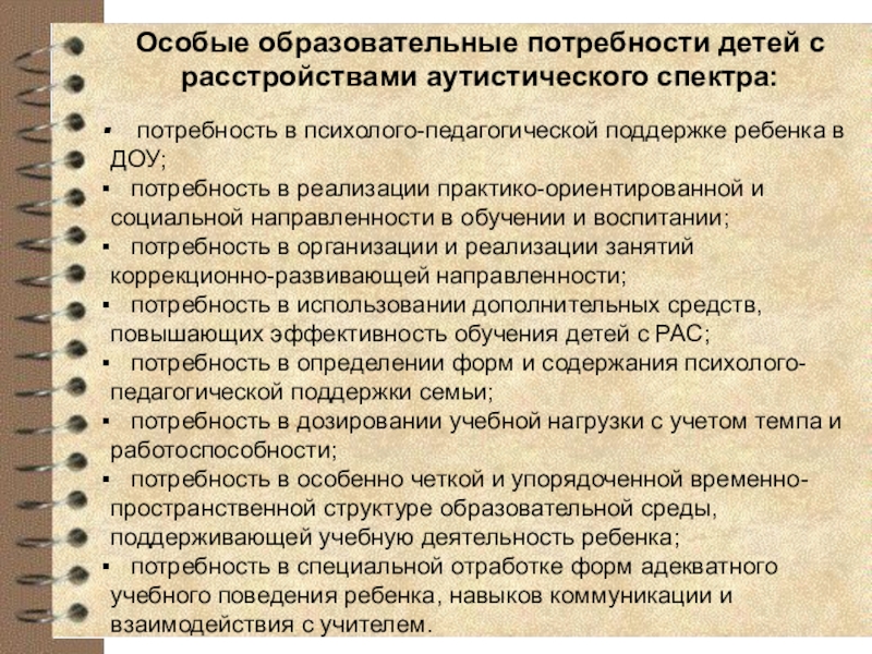 Особые образовательные потребности детей с расстройствами аутистического спектра: